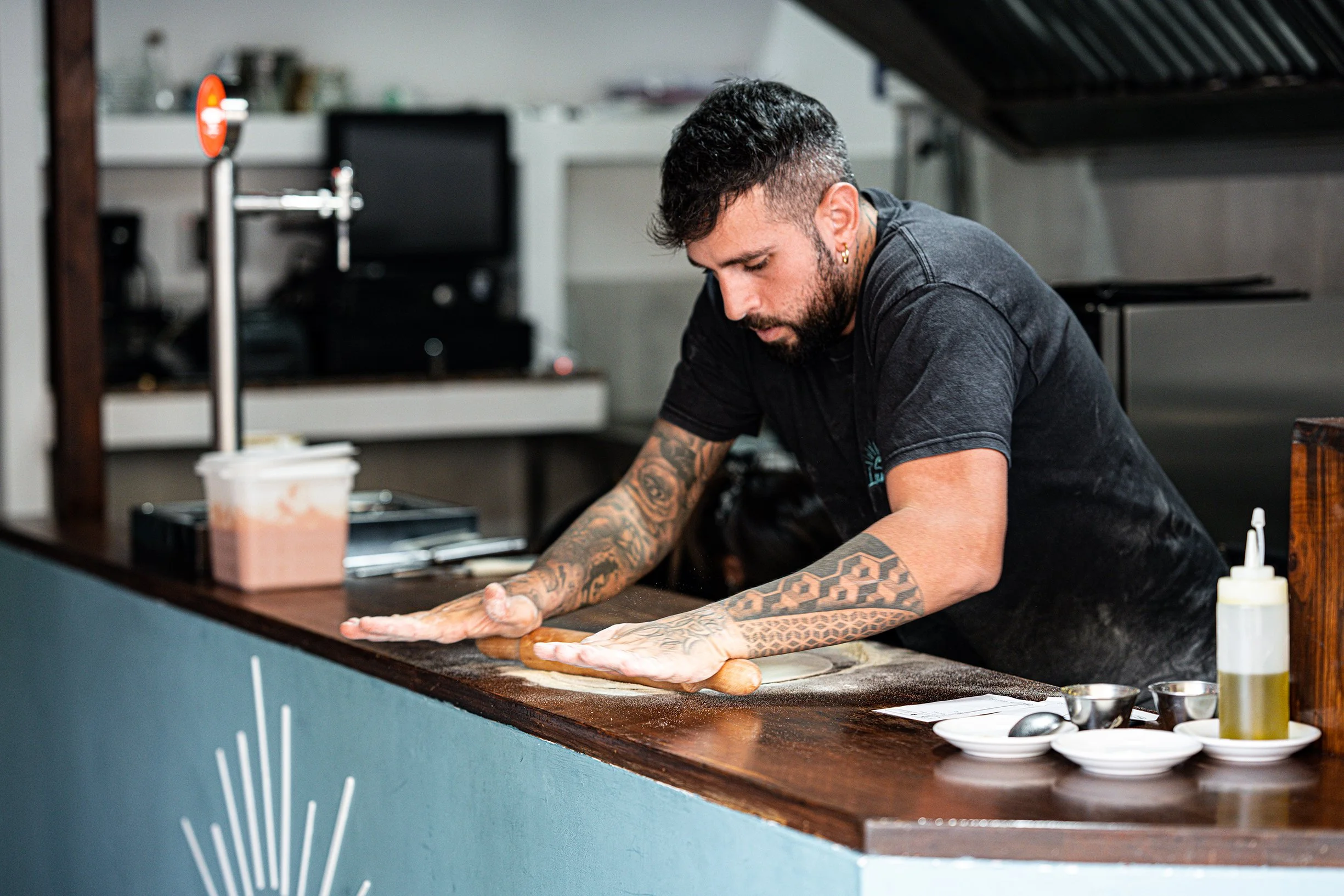 Per Lumos ci siamo occupati della realizzazione dell’insegna con il logo, applicata sui banconi interni per valorizzare l’identità del locale.